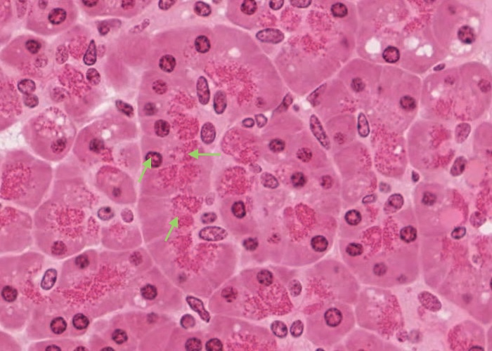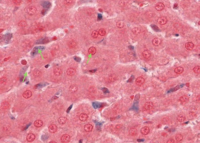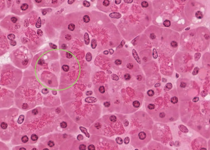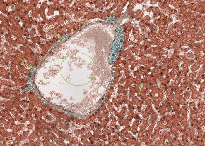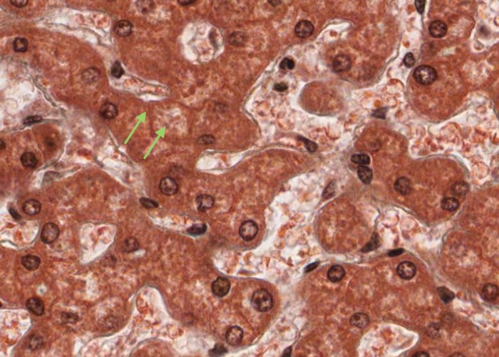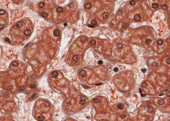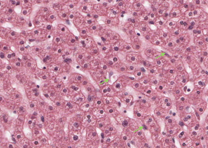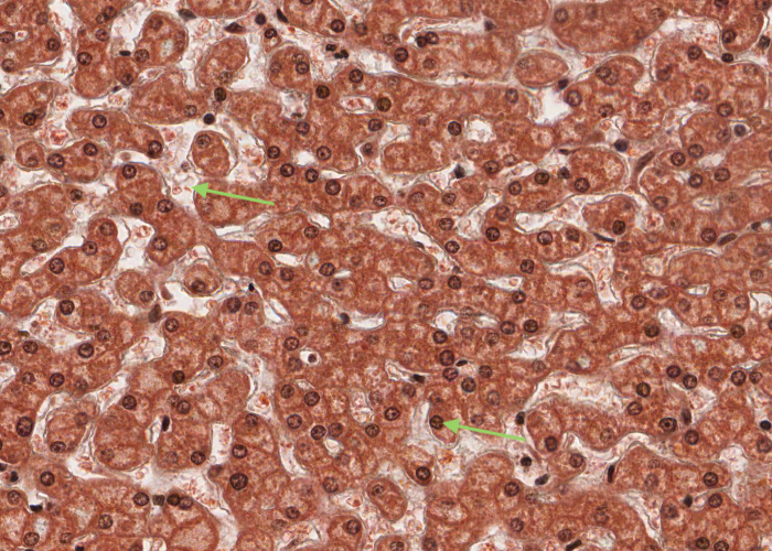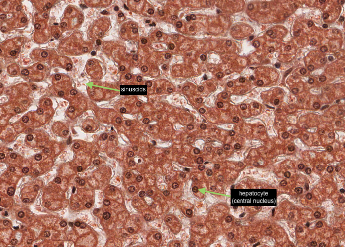 This section of liver is only six micrometres/microns thick, so there must be a lot of these cells in the whole liver.