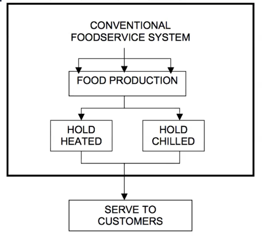 raw foods purchased → food preparation → hold heated/chilled → served after preparation and on site