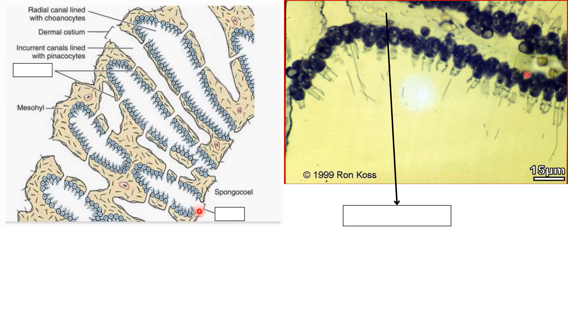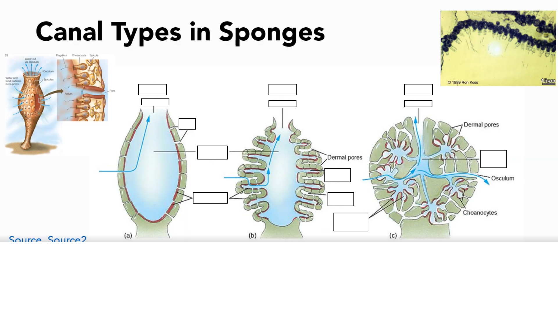 Water would still enter the _______ and be filtered out by the __________ in the ______________. Then travel to the ______________ area, there is no space for a spongocoel.