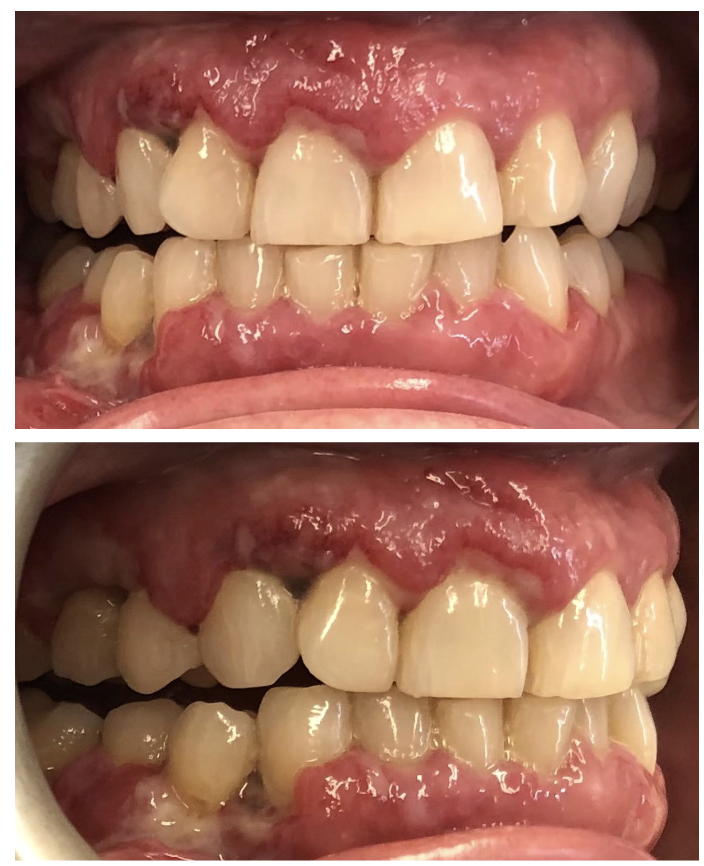 Diffuse, boggy, non-tender swelling of gingiva. With or without ulceration