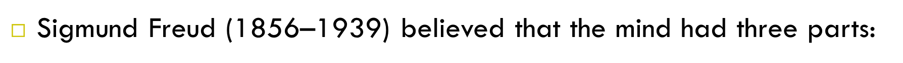 ¨Sigmund Freud (1856–1939) believed that the mind had three parts: