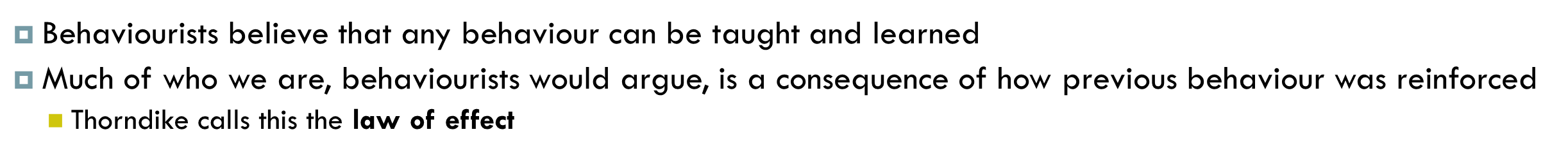 ¤Much of who we are, behaviourists would argue, is a consequence of how previous behaviour was reinforced