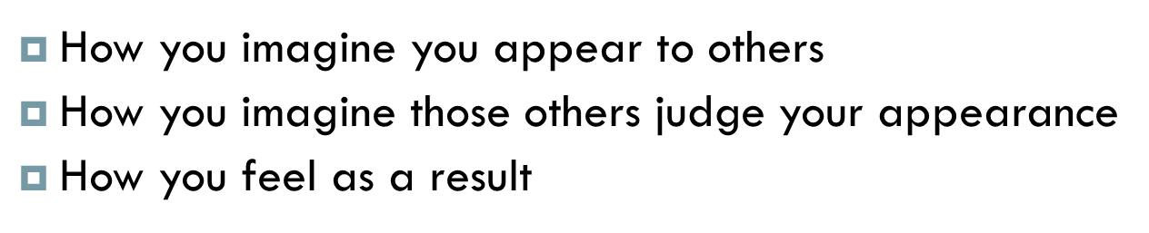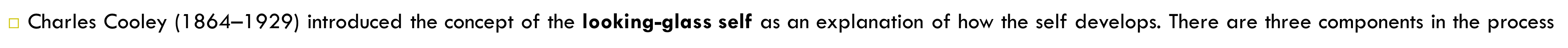Charles Cooley (1864–1929) introduced the concept of the looking-glass self as an explanation of how the self develops. There are three components in the process