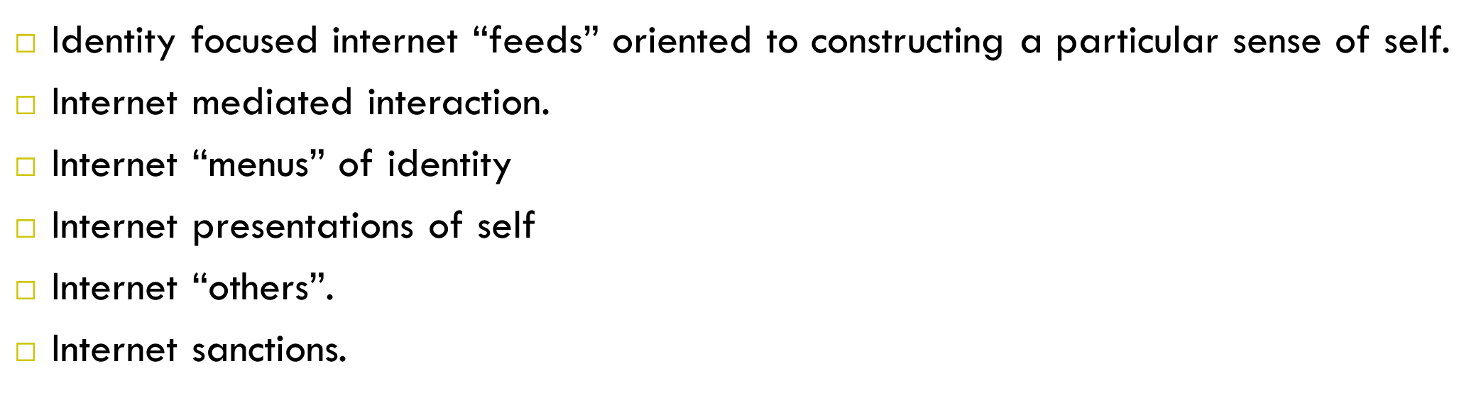 ¨Identity focused internet “feeds” oriented to constructing a particular sense of self.
