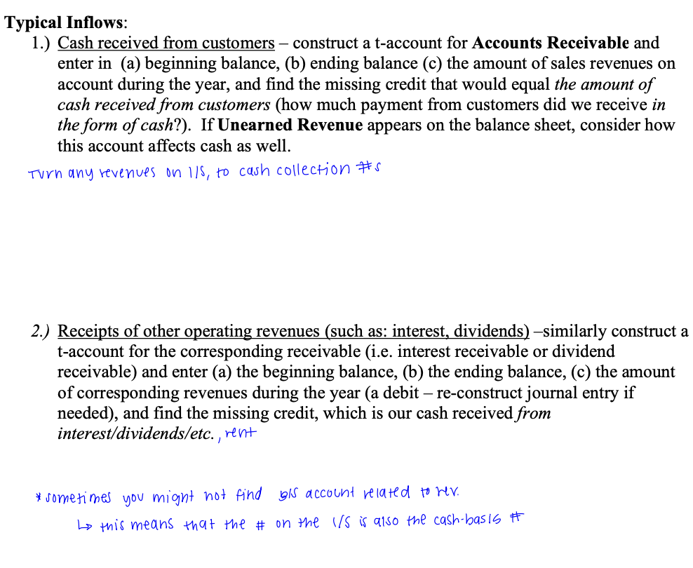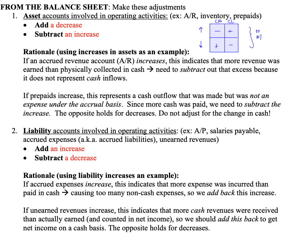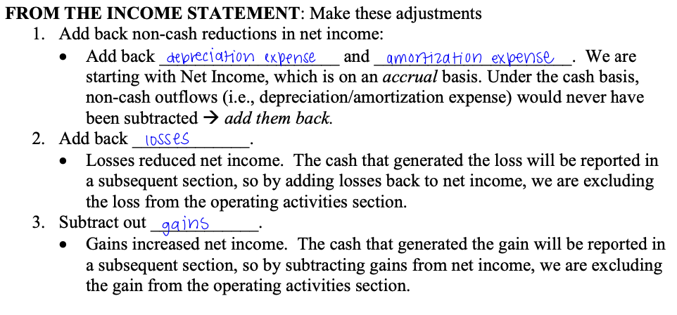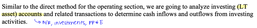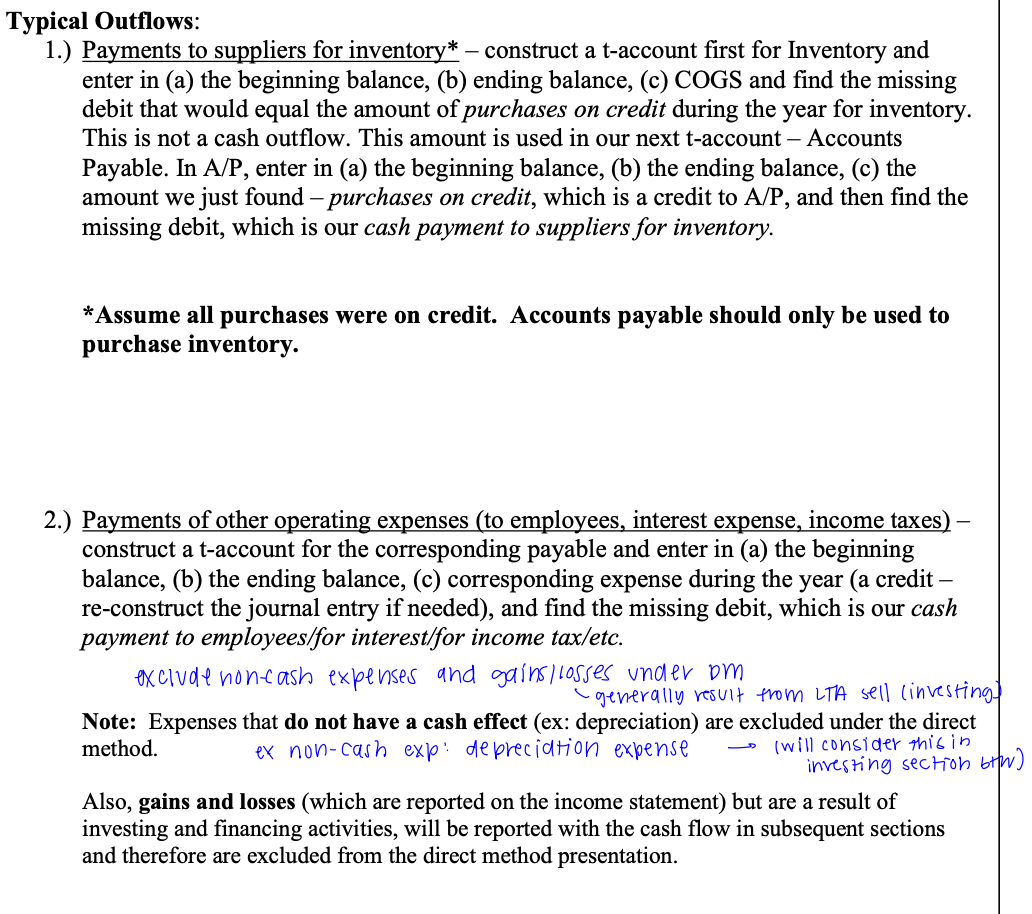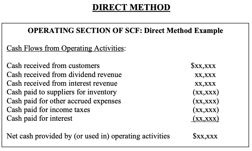 direct method - we will convert each line item on the income statement from an accrual basis to a cash basis