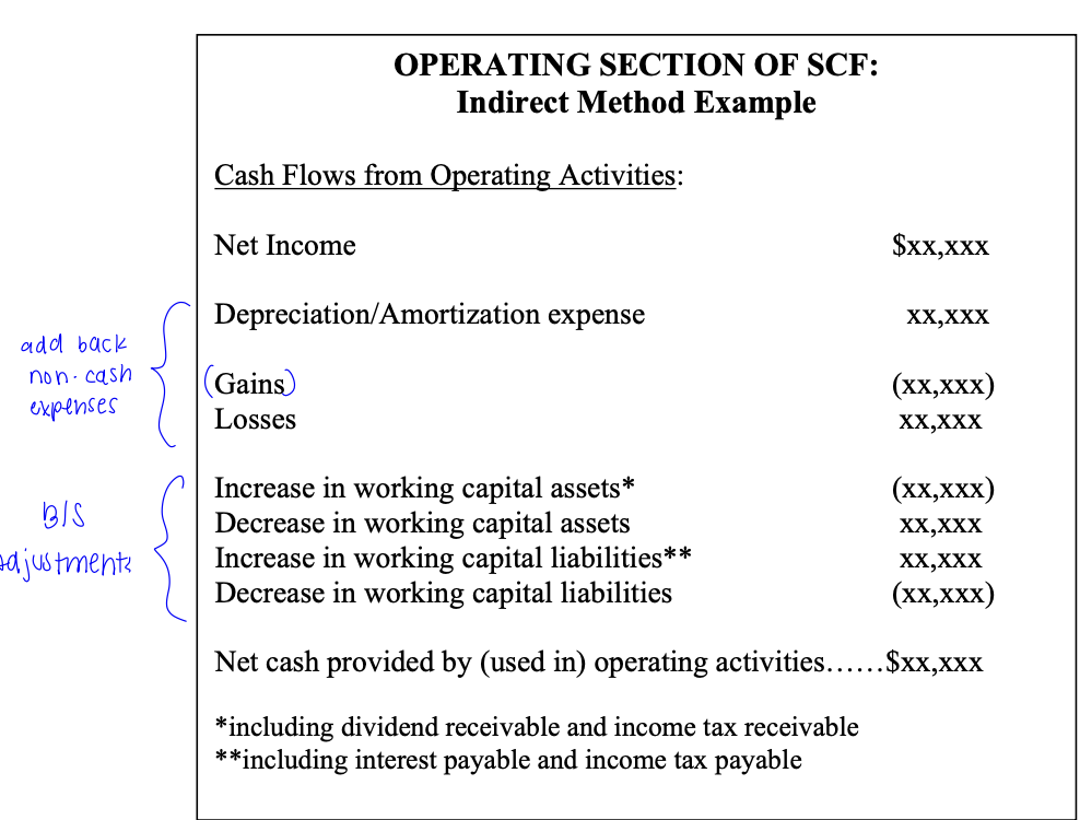 indirect method - we will convert net income form an accrual basis to a cash basis