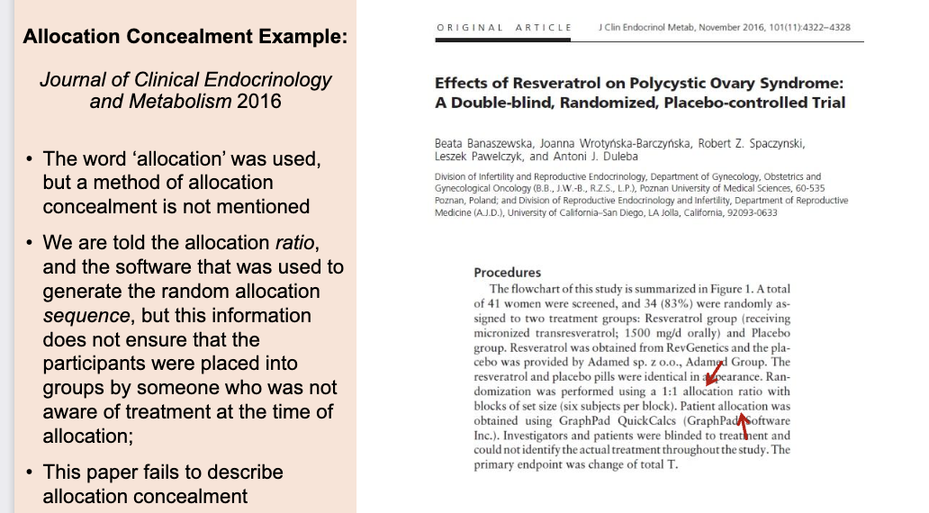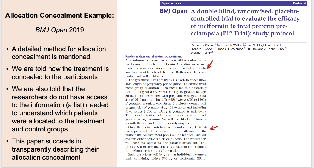 Studies show that the effect of a treatment can be exaggerated by 35–40% if allocation concealment is not properly used.