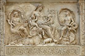 from the east side of the Ara Pacis, Rome, 13-9 BCE. Marble relief-sculpture