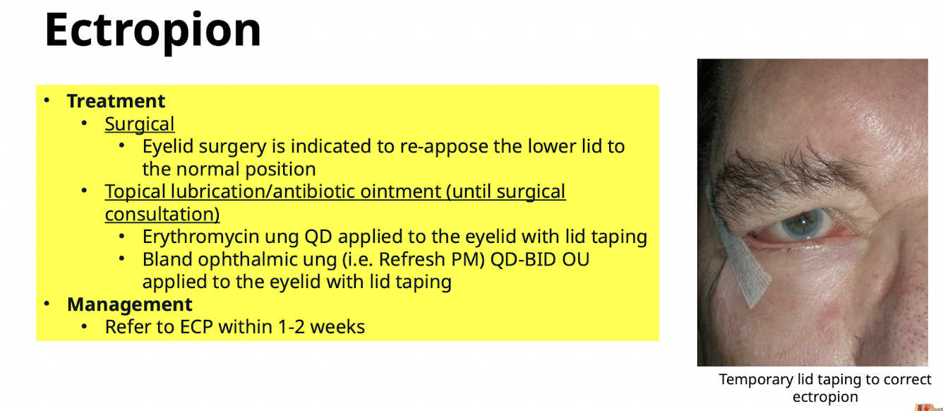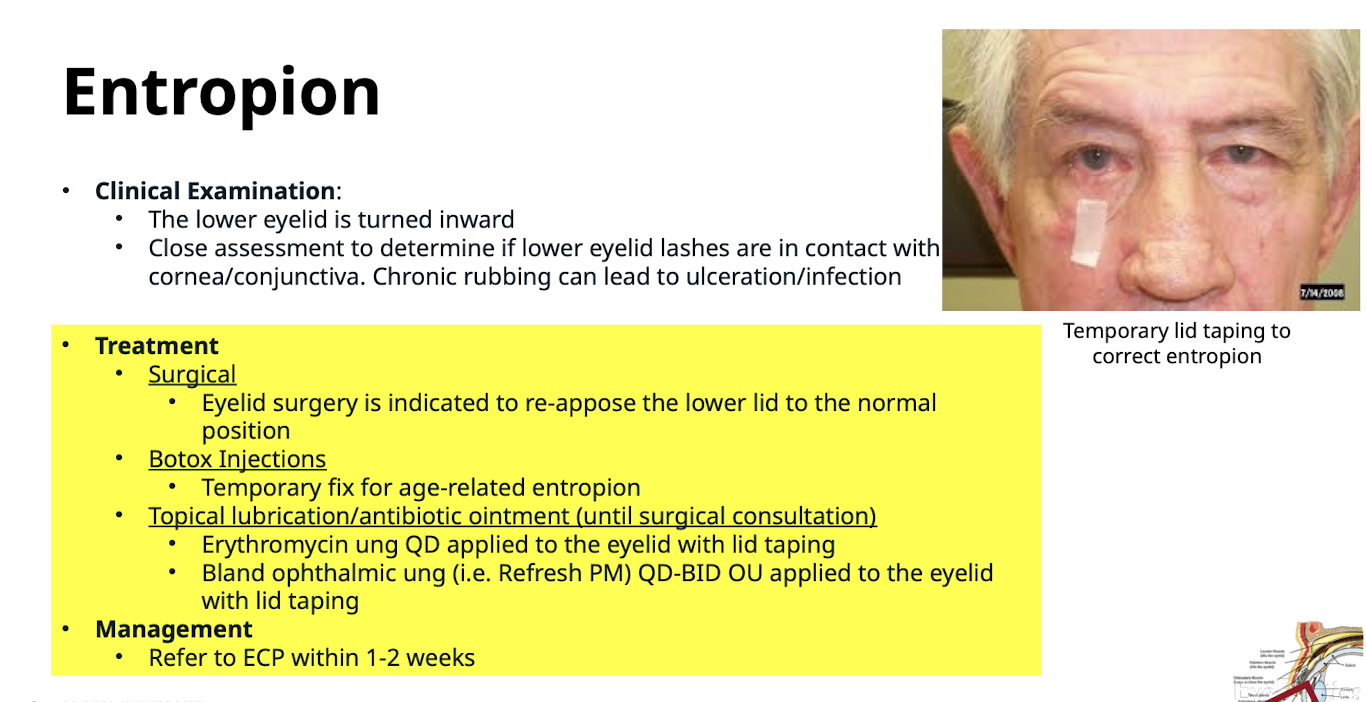 What are the treatment methods for Entropion? What is the management? Refer to ECP within 1-2 weeks