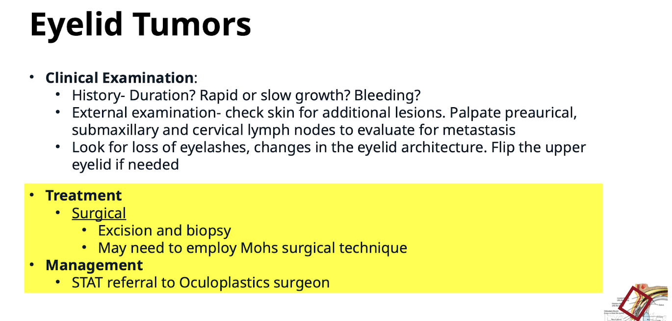 What is the management plan for suspected eyelid tumors?