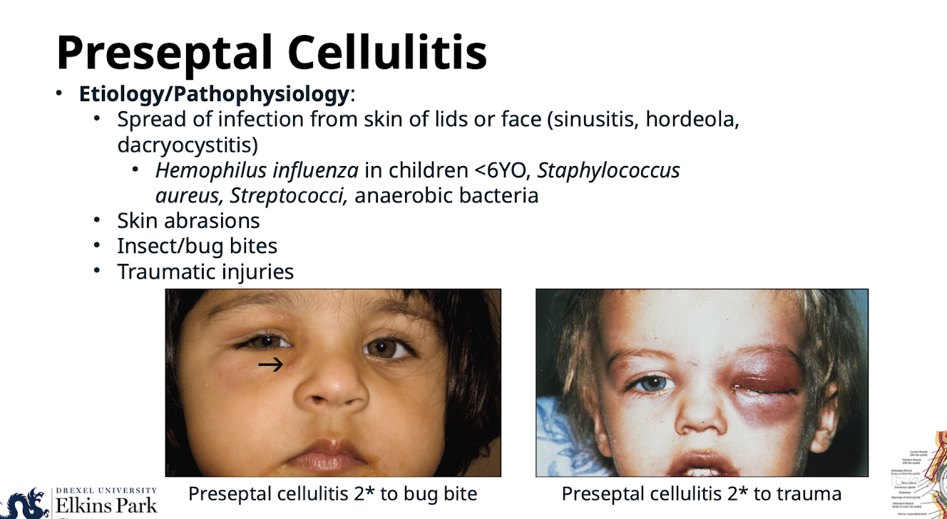 What is the Etiology/Pathophysiology of Preseptal Cellulitis?