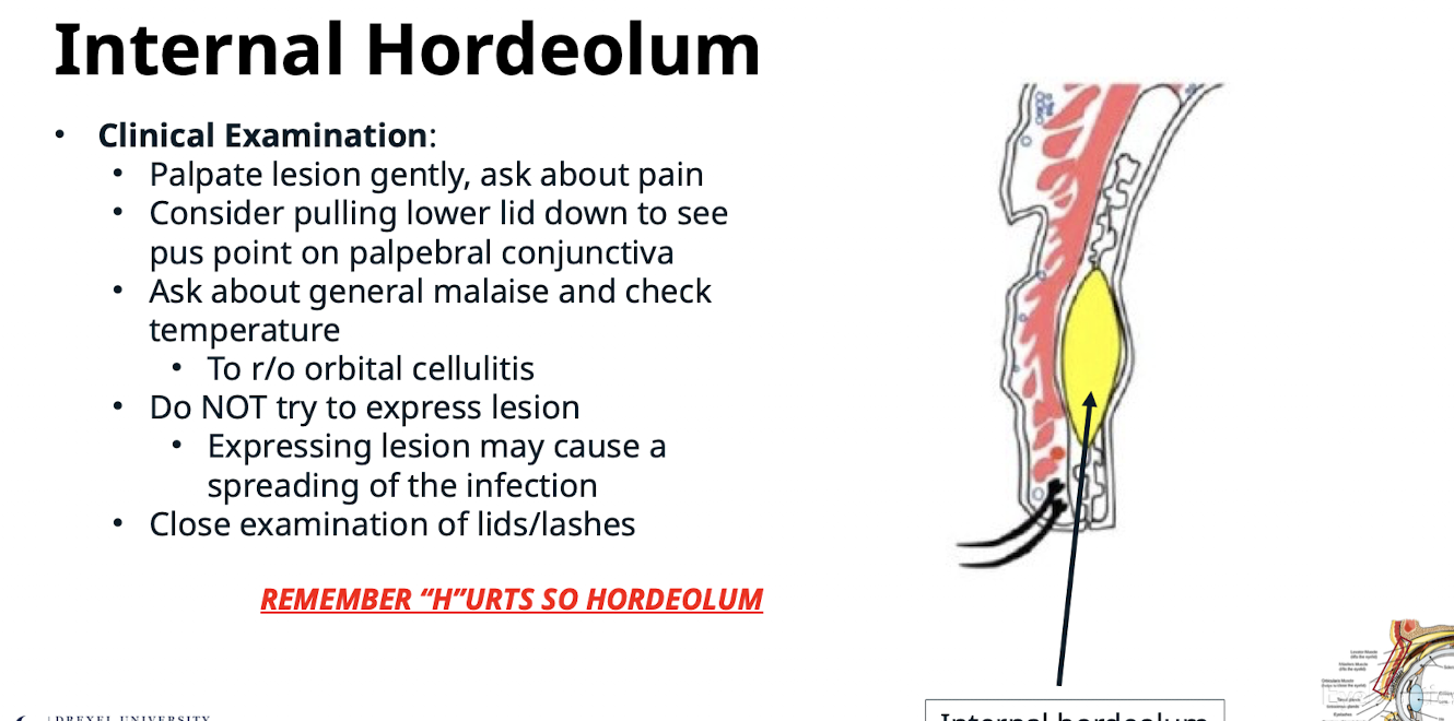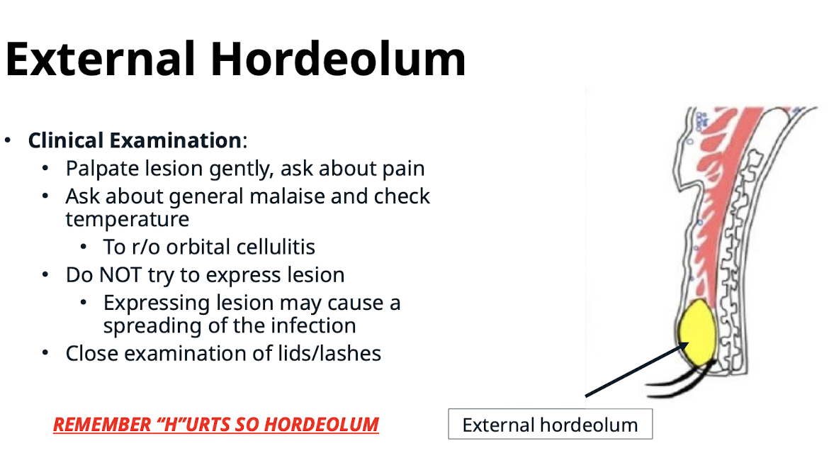 REMEMBER “H”URTS SO HORDEOLUM. Chalazions do not hurt