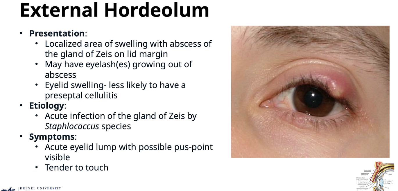 How does External Hordeolum present?
