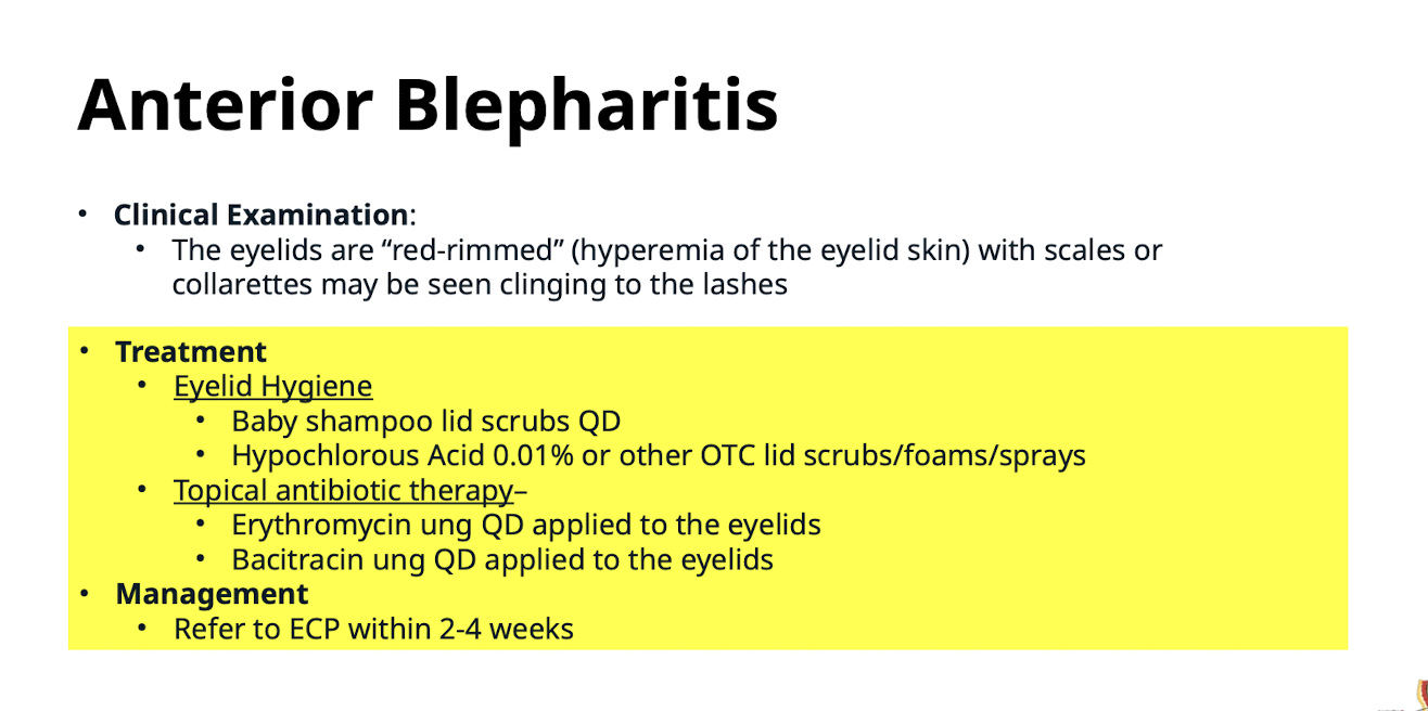 What topical antibiotic therapy and management is used for Anterior Blepharitis? Refer to ECP within 2-4 weeks