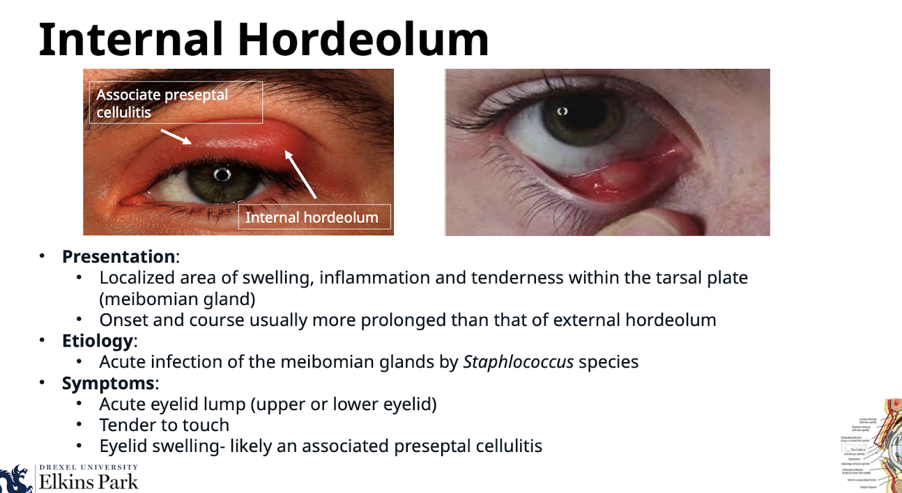 Acute infection of the meibomian glands by Staphlococcus species