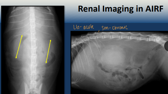 History: Absence of longstanding PU/PD, potential for renal ischemia or nephrotoxin exposure, oliguria, polyuria, non specific signs