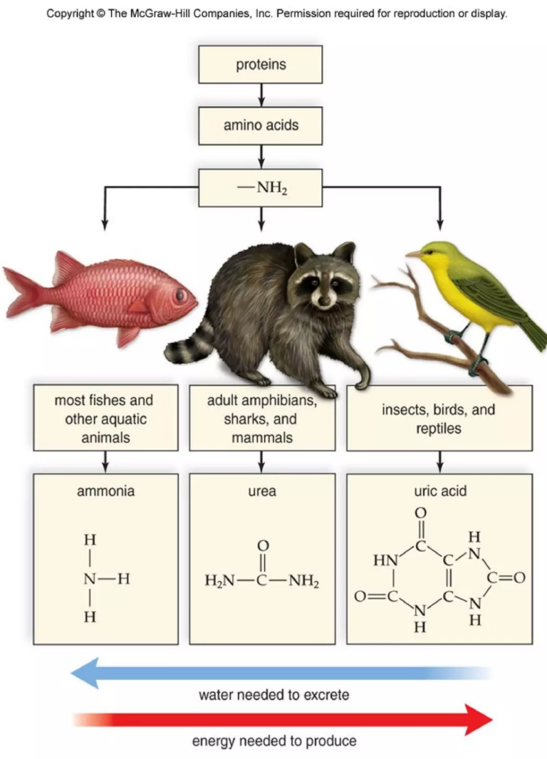 Less toxic than ammonia; can be concentrated to conserve water and eliminated in urine