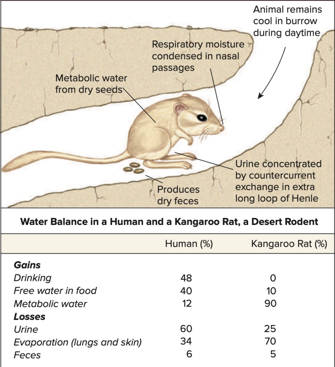 Conserve water by excreting highly concentrated urine and minimizing evaporation from lungs and skin