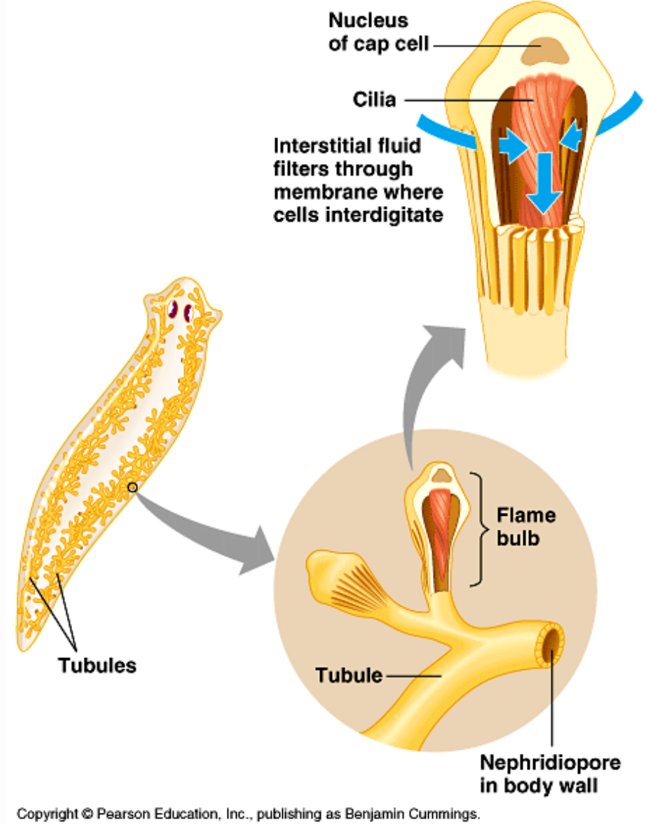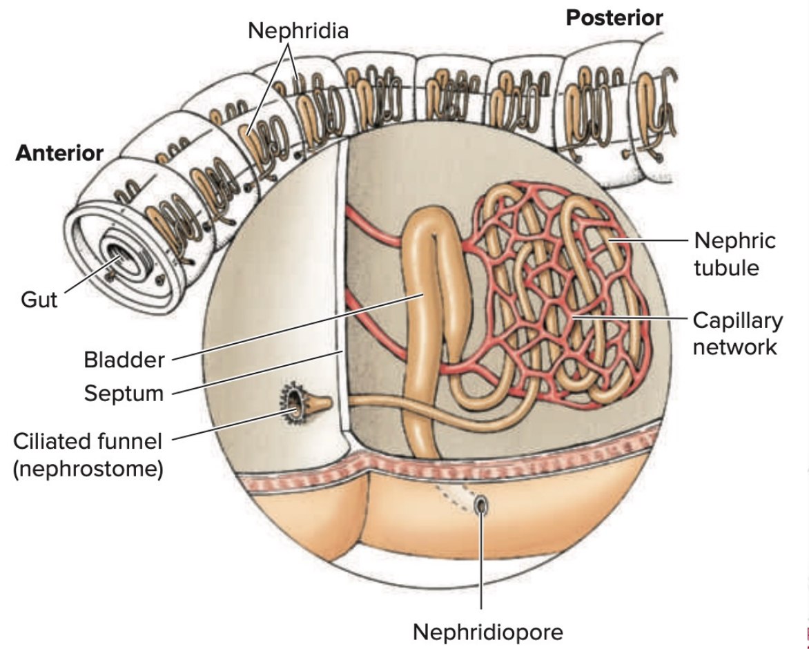 Fluid swept into the tubule through a ciliated funnel-like opening, the nephrostome.