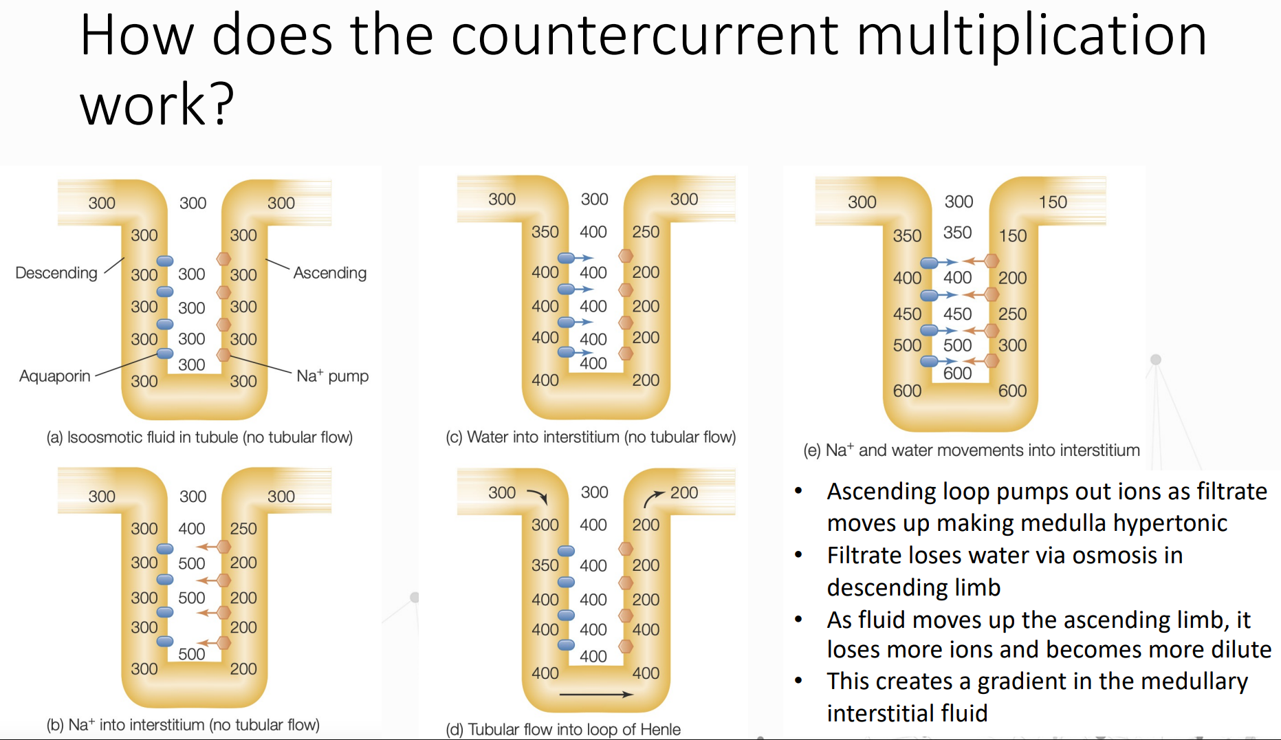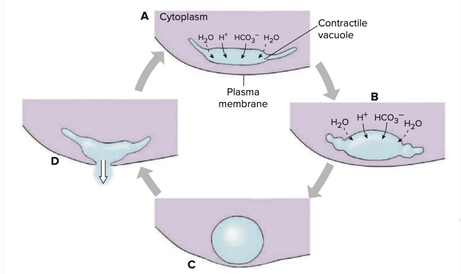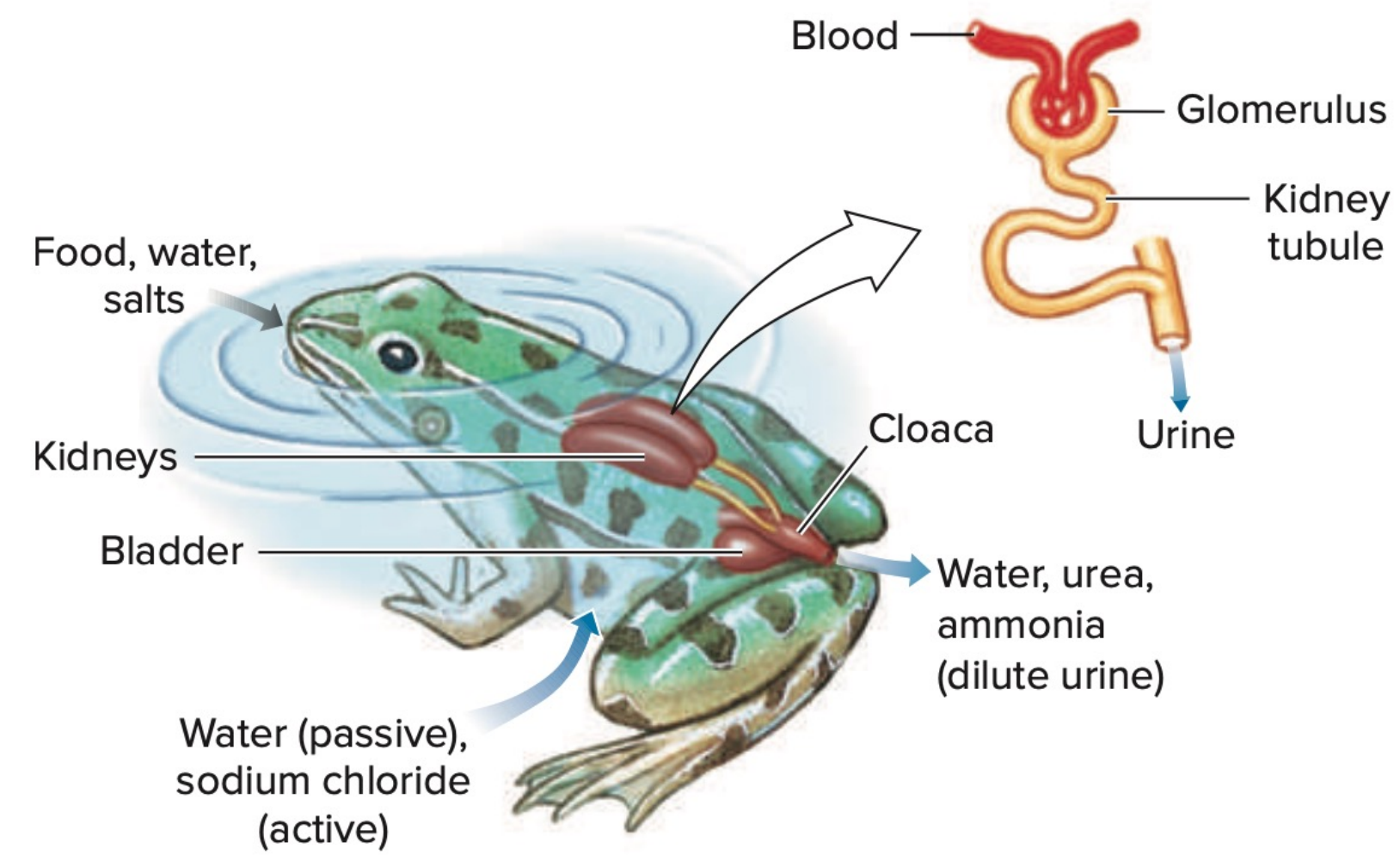 Water enters the highly permeable _____ and excess is excreted by __________.