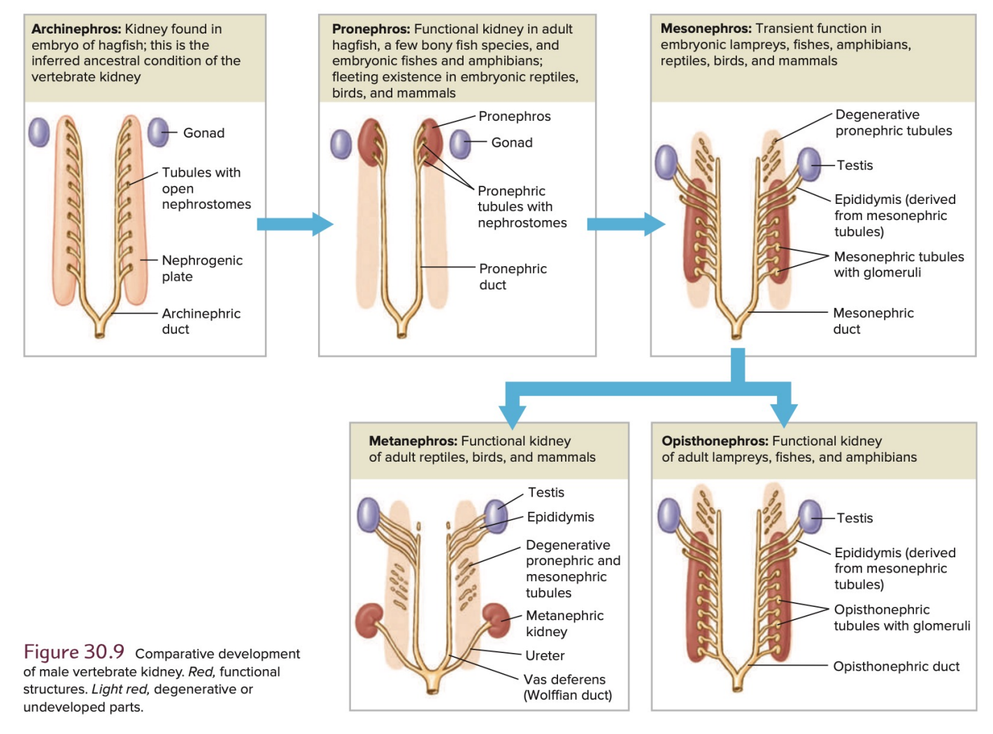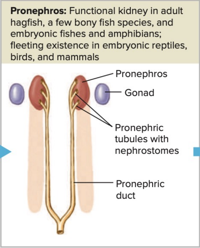 _______________: Functional kidney in adult hagfish, a few bony fish species, and embryonic fishes and amphibians; fleeting existence in embryonic reptiles, birds, and mammals
