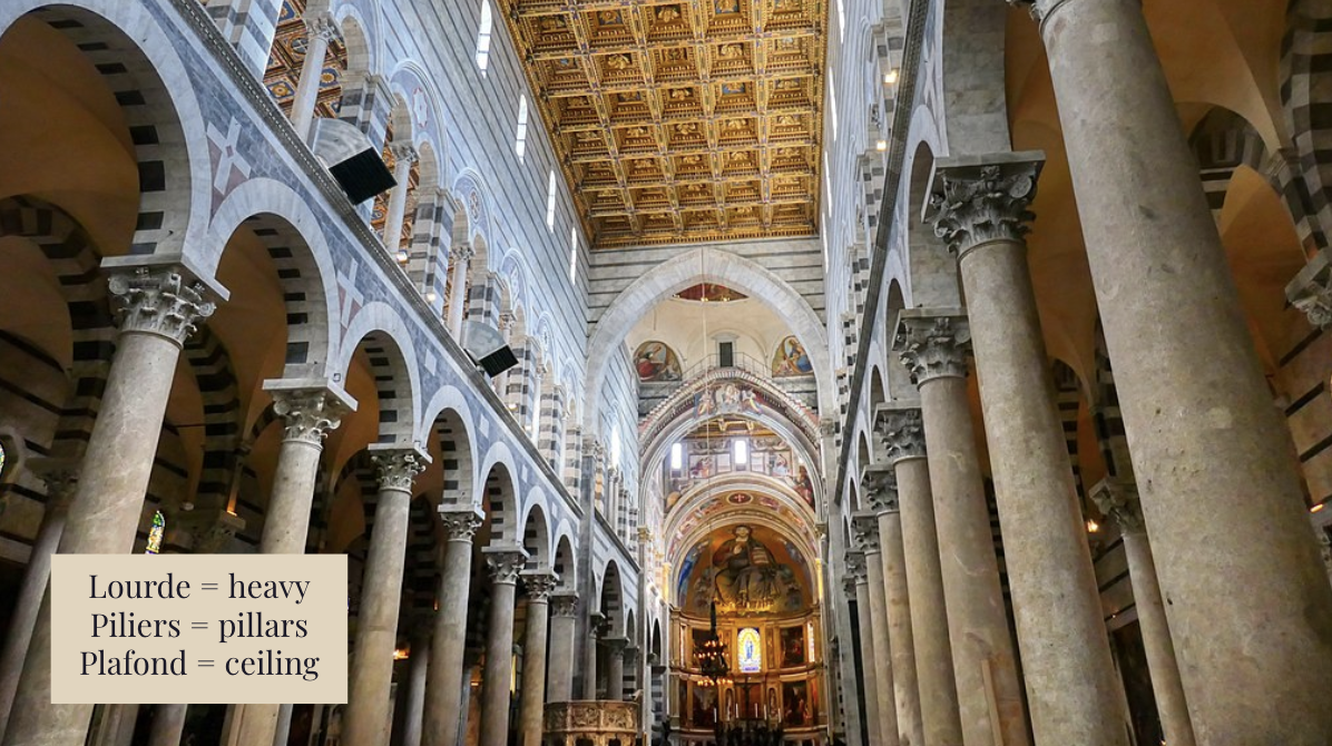 Les piliers supportent le poids du plafond (ceiling) et des murs.