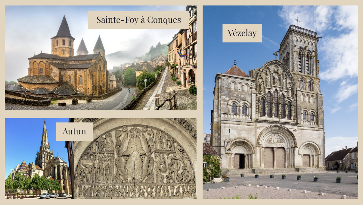 et finalement, voici quelques cathédrales romanes célèbres : Sainte-Foy à Conques, Vézelay, et Autun.