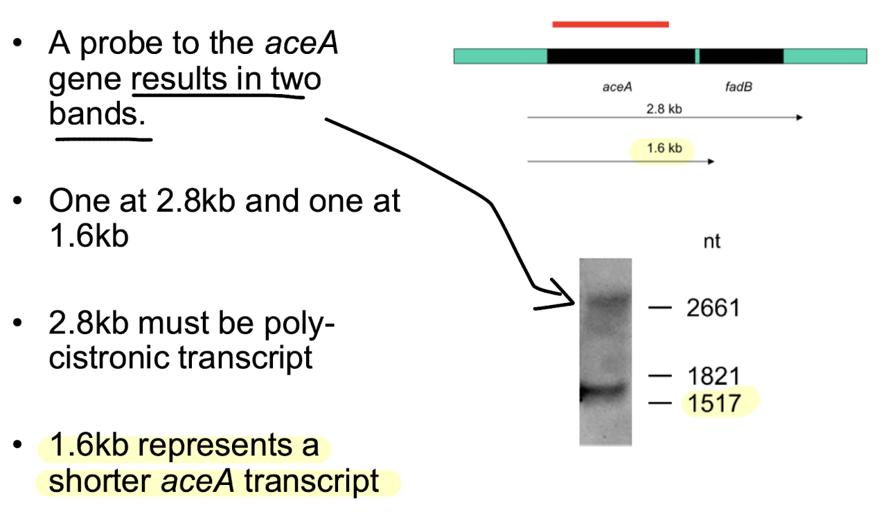 Two transcripts: 2.8 kb (polycistronic full transcript) and 1.6 kb (shorter transcript).