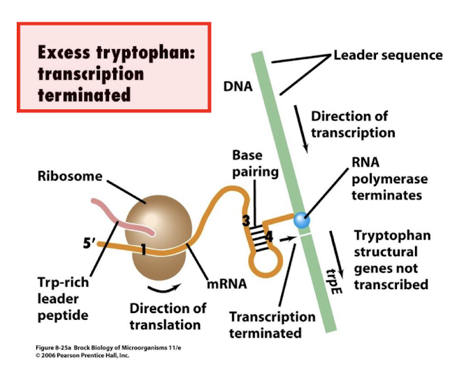 • In the absence of Trp then the ribosome stalls at the leader peptide