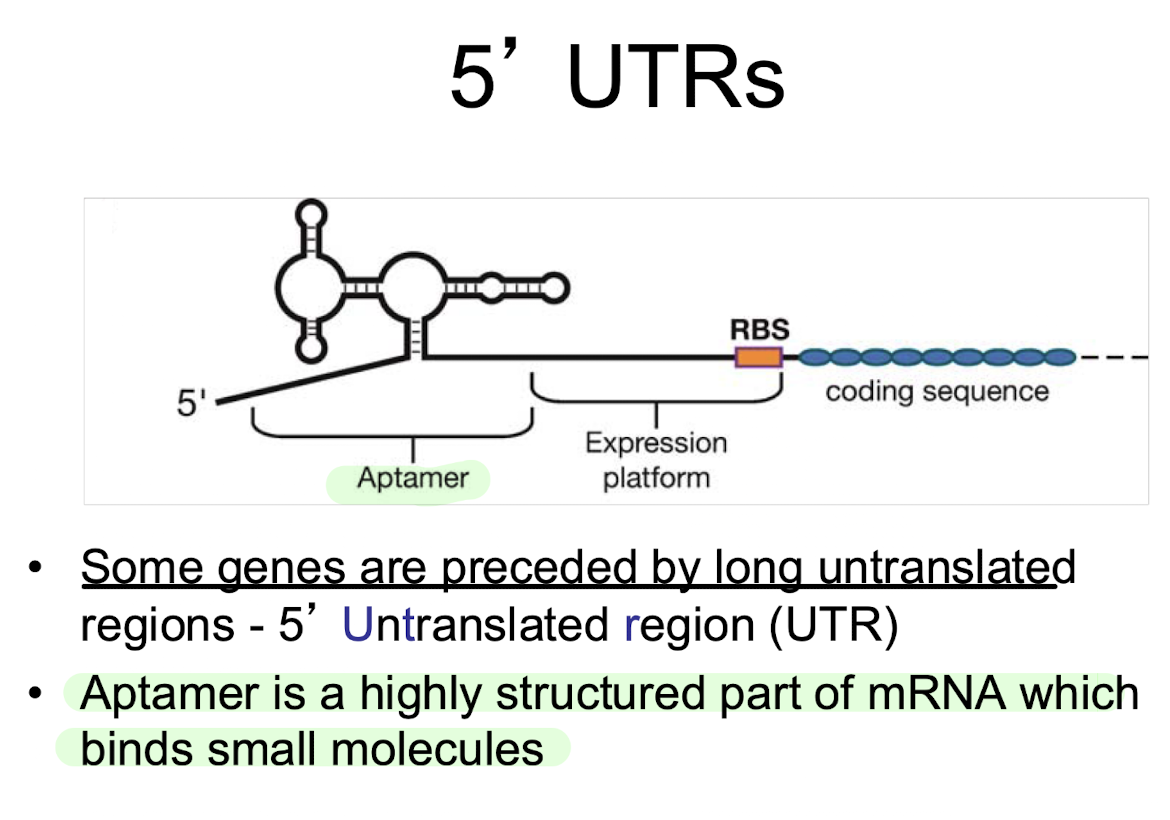 contains the part of the mRNA that controls the RBS (ribosome binding site)