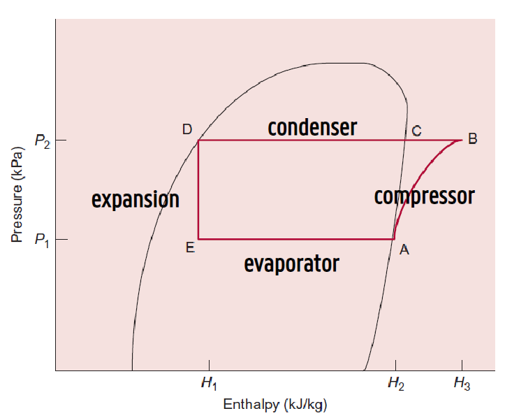 Low T preservation: Mechanical vapor-compression system - Pressure-enthalpy chart