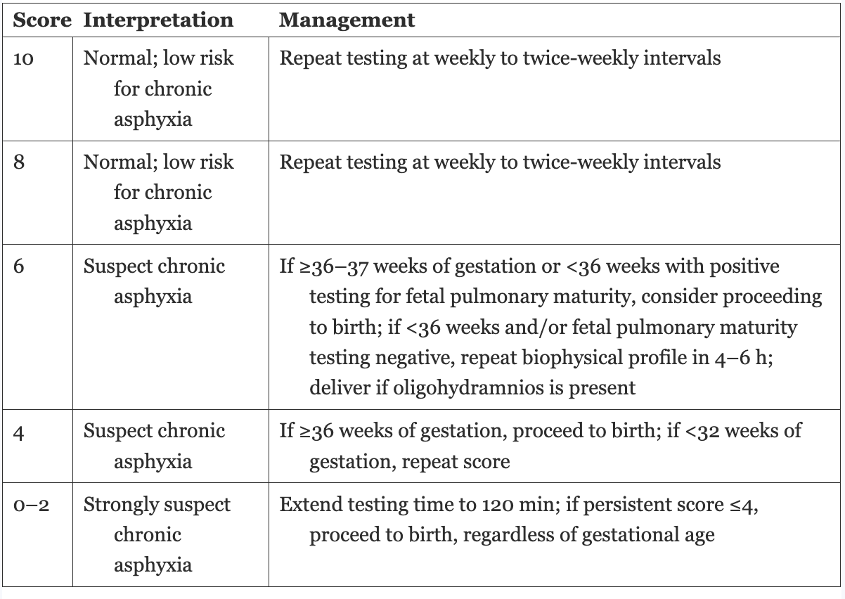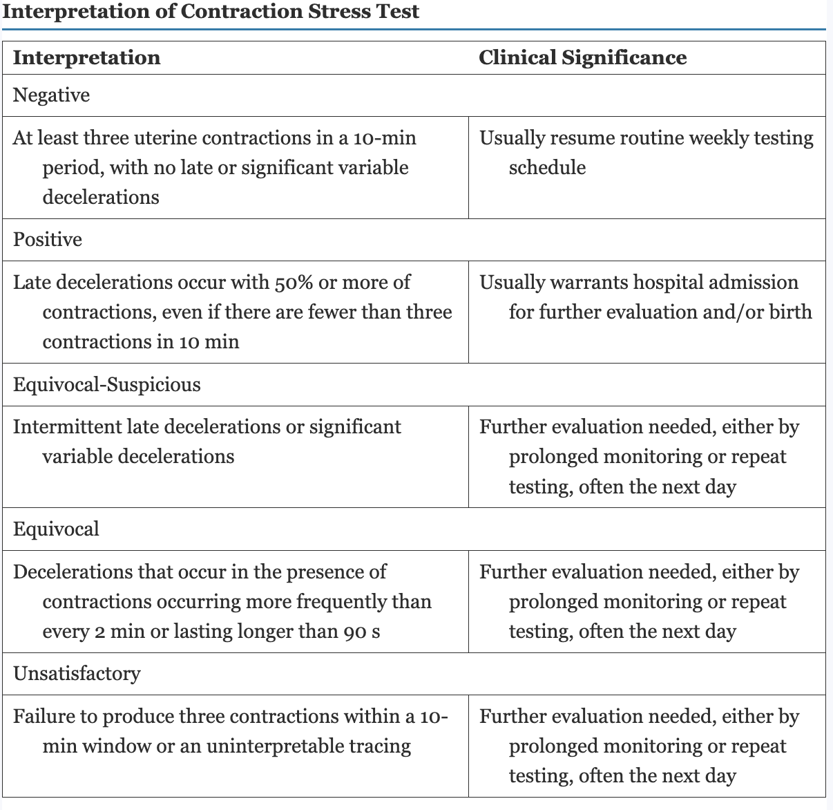 Interpretation of contraction stress test table