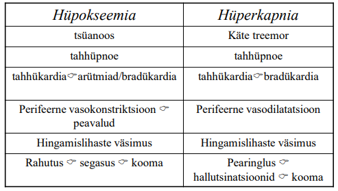Hüperkapnia- suurenenud CO2 tase arteriaalses veres, seostub mitme hüpoksia vormiga