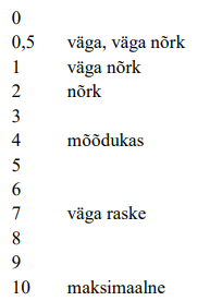 Borgi skaalal düspnoe olemasolu/raskus (patsiendi subjektiivne hinnang pallides)