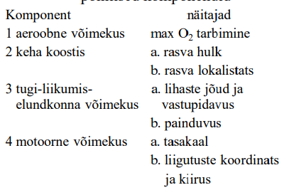 Tervisega seotud kehalise võimekuse põhilised komponendid:
