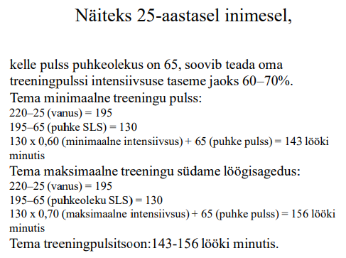 ((pulss max-pulss puhke)x 40-85%) + pulss puhke