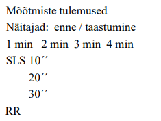 Pärast tööd mõõdetakse testitaval RR istudes, SLS lugemist alustatakse 1 min pärast testi lõppu, teisel minutil.