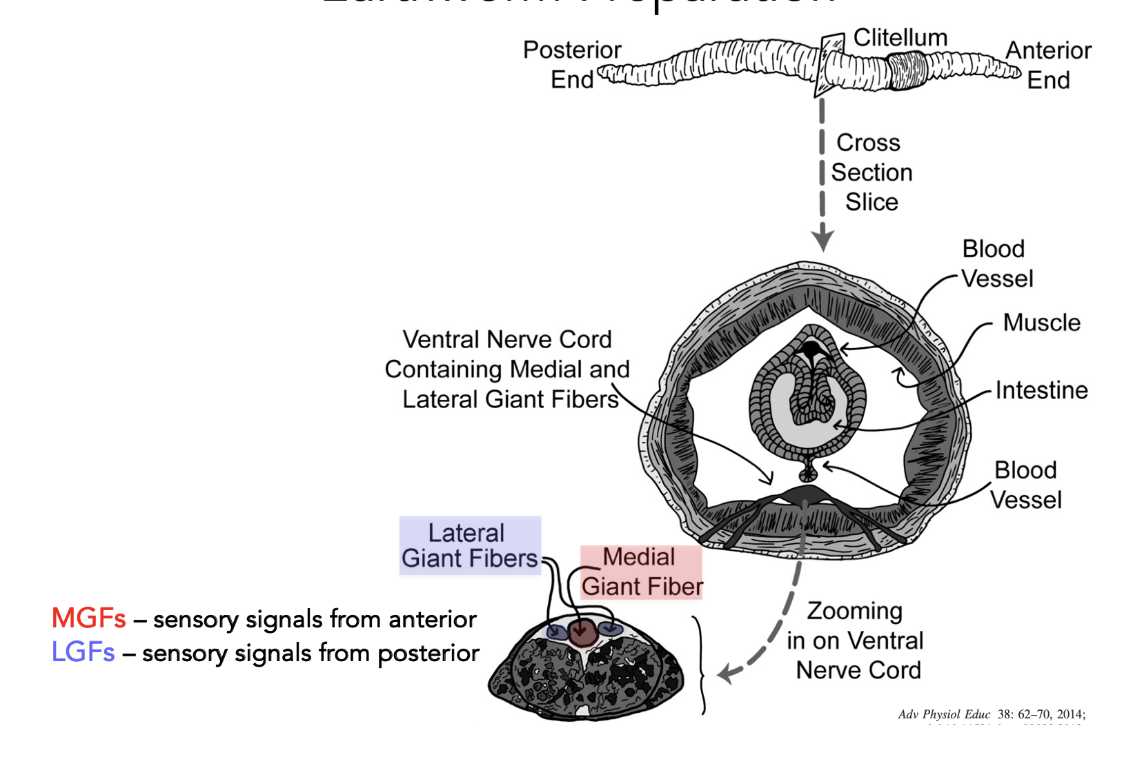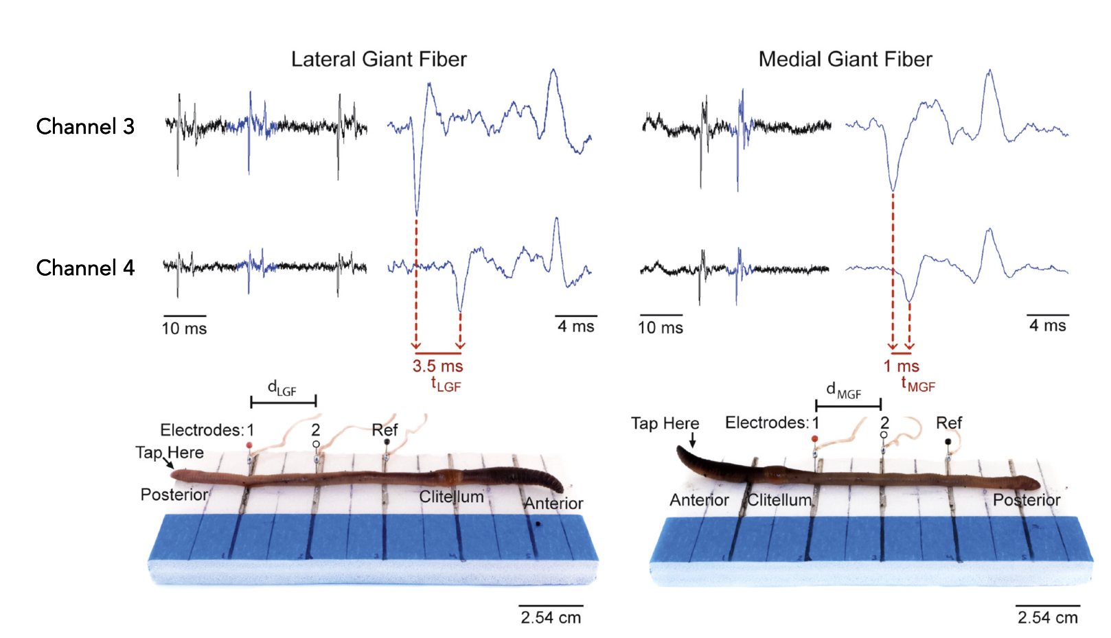 we’re measuring action potentials from the Medial Giant fibre, and two smaller lateral giant fibres