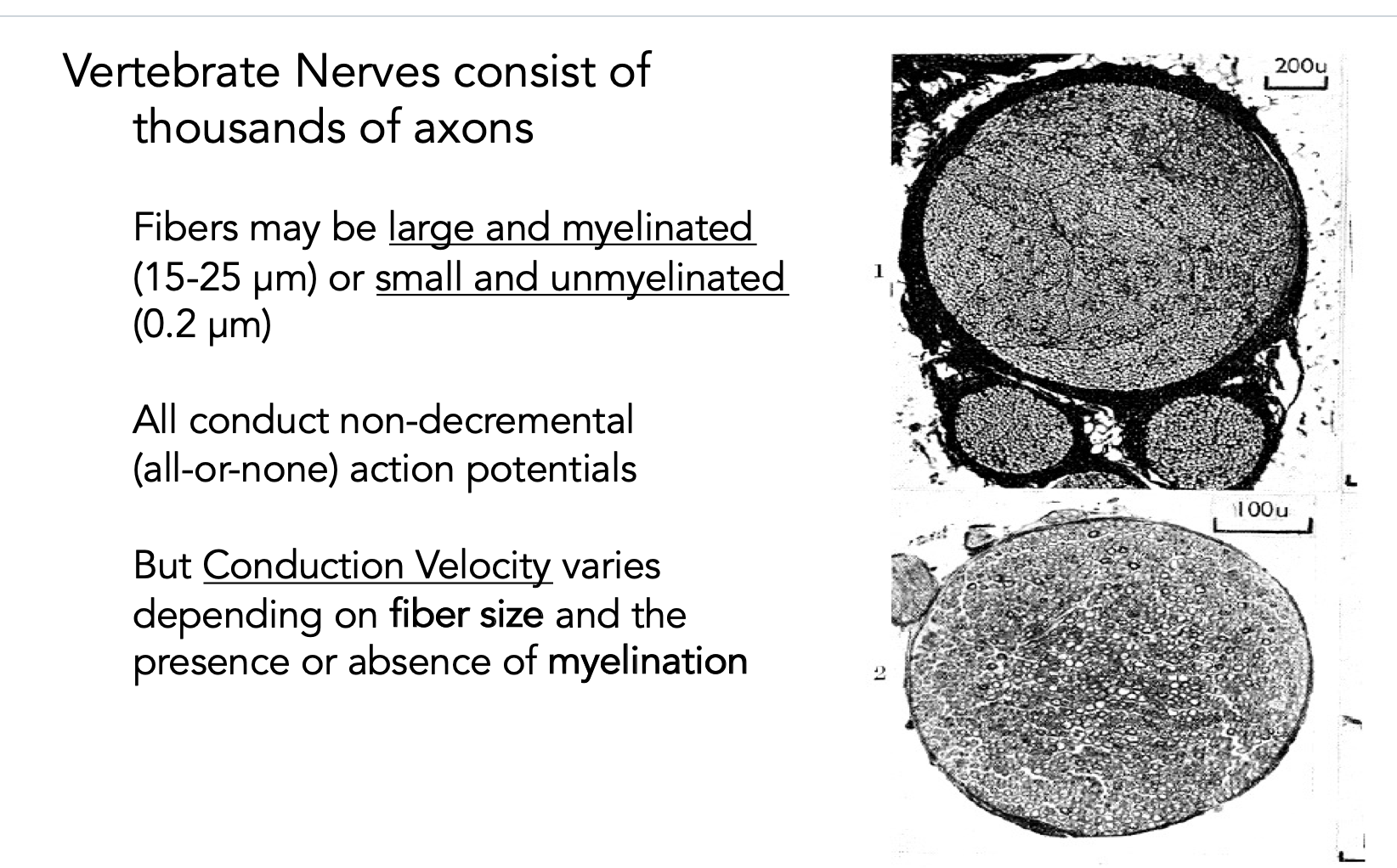 different vertebrate nerve conduction velocities