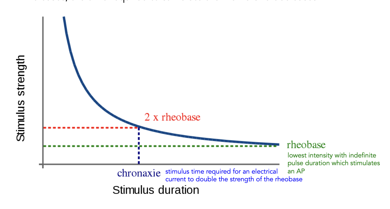 lowest intensity with indefinite pulse duration which stimulates an AP