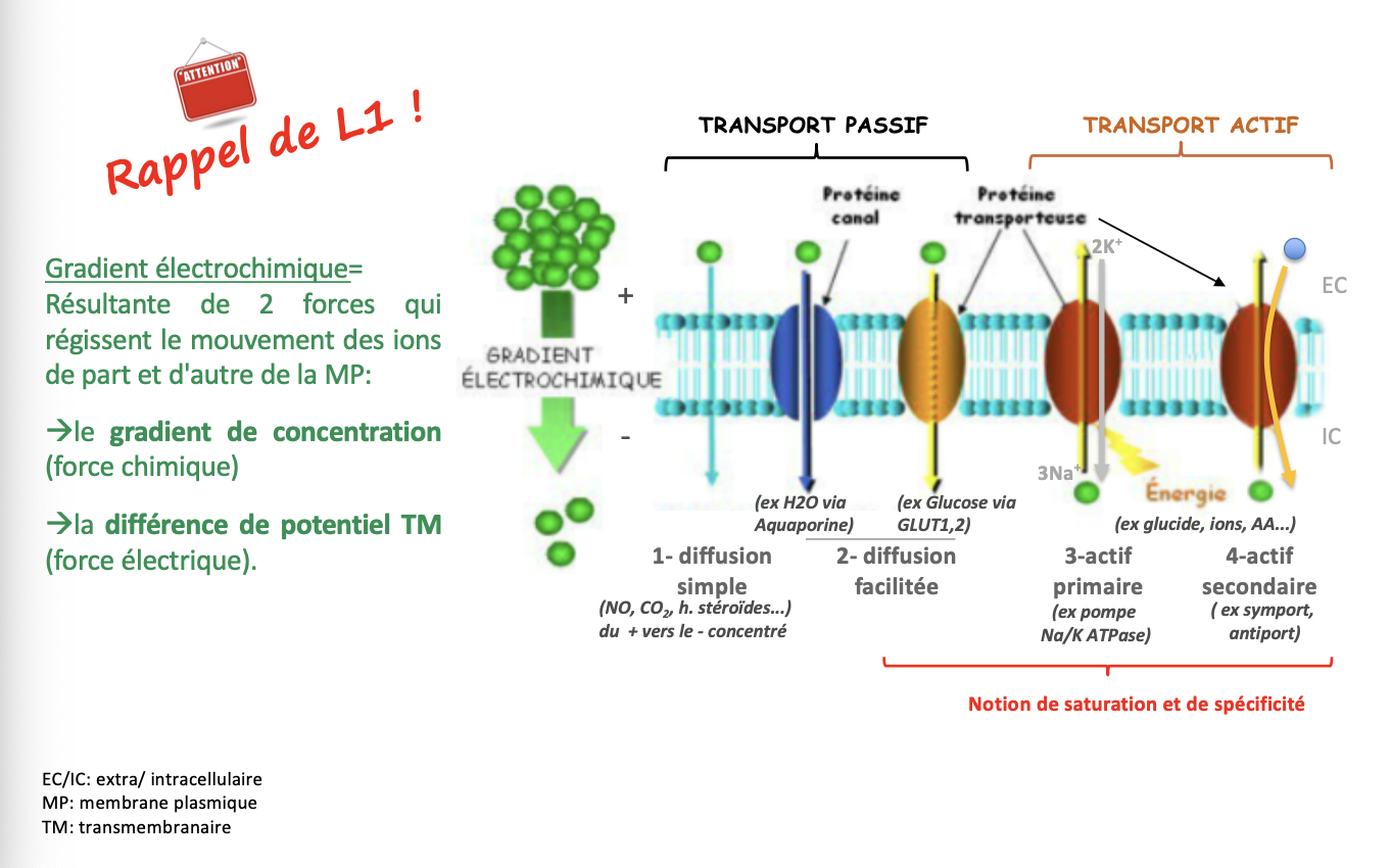 ➡ Le déplacement d’un ion dépend donc à la fois de la concentration et du potentiel électrique.