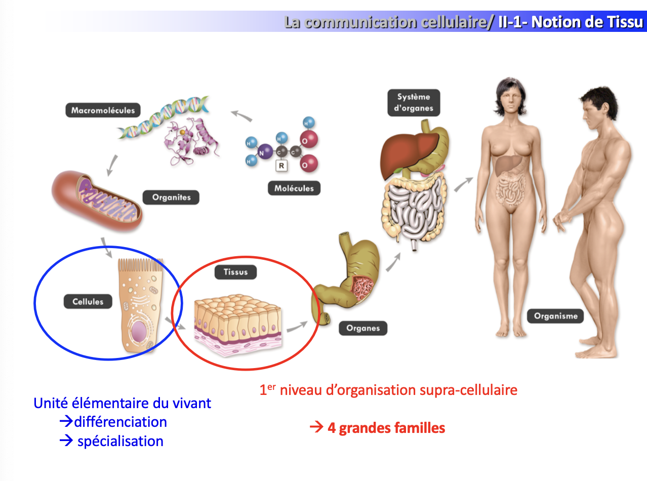 ➡ Le tissu est donc le premier niveau d’organisation supra-cellulaire.