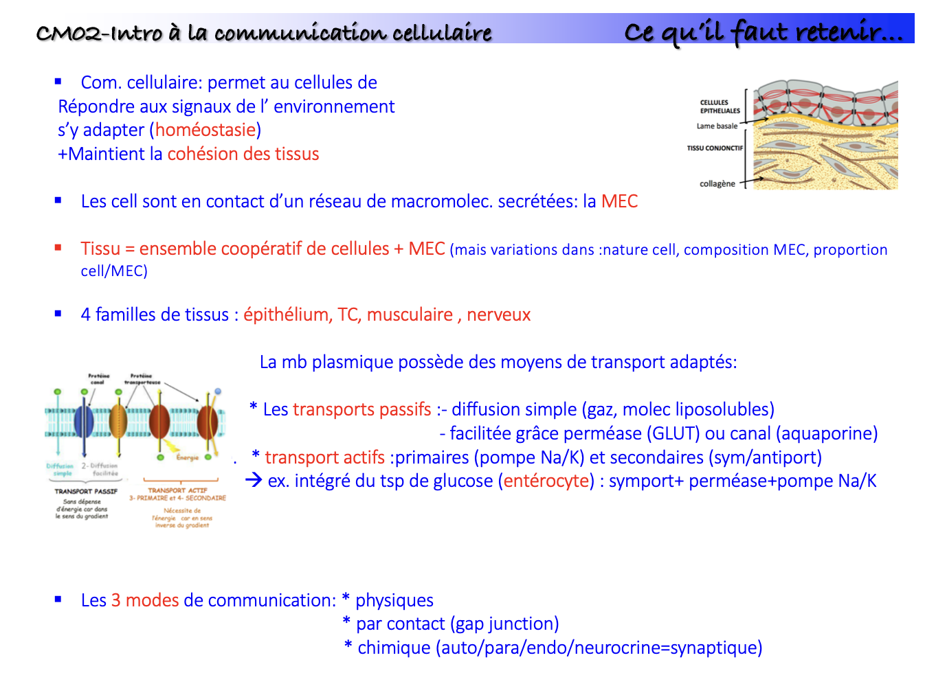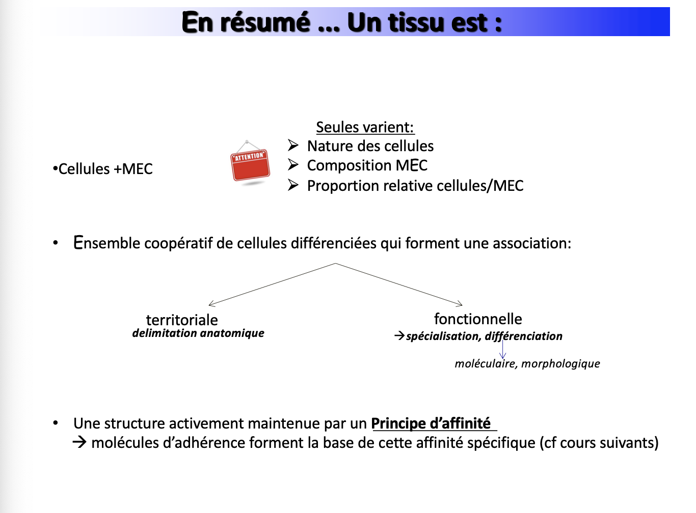 Un tissu est un ensemble coopératif de cellules + MEC.