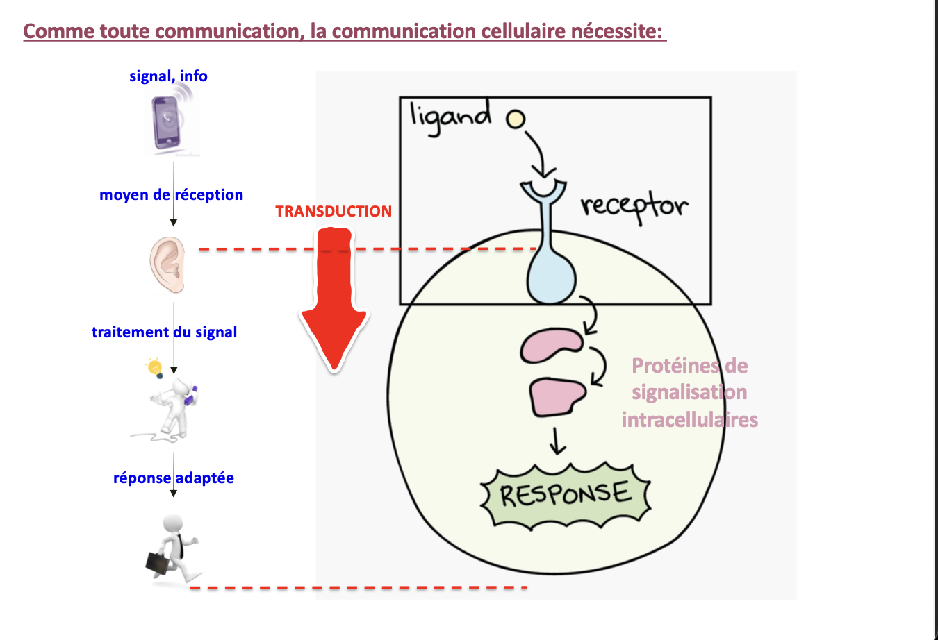 La transduction du signal correspond au processus par lequel l’activation d’un récepteur par un ligand est transformée en une cascade d’événements intracellulaires.
