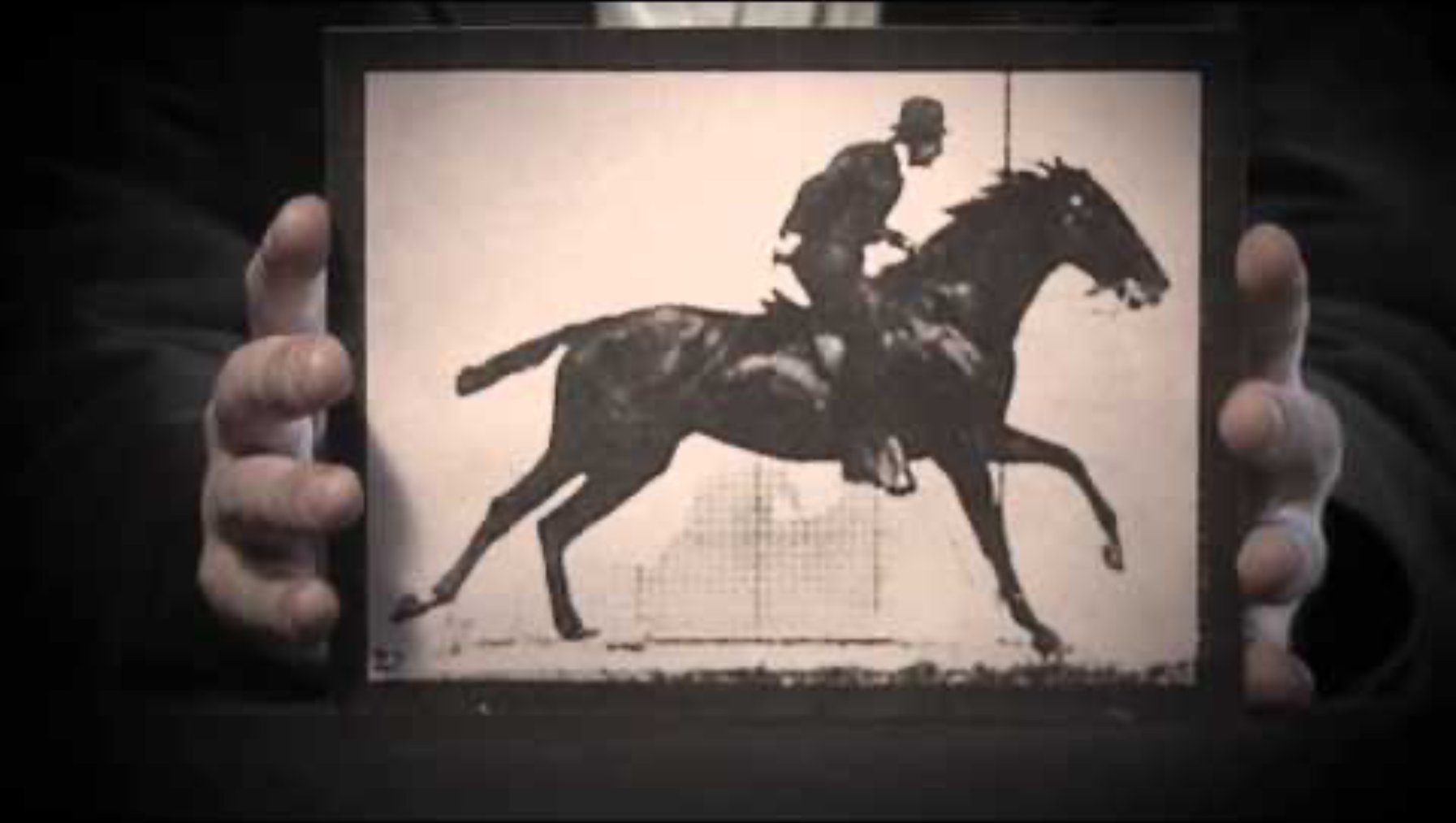 A frame from Eadweard Muybridge's groundbreaking 1878 photographic study, often known as "Sallie Gardner at a Gallop" or "The Horse in Motion".