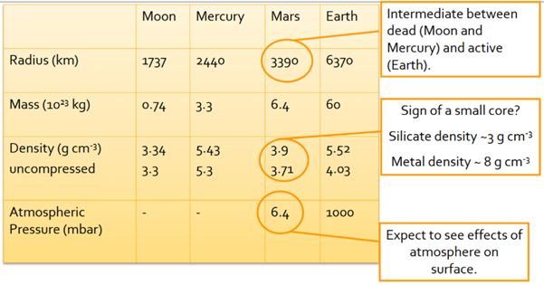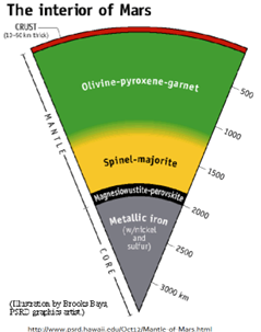 Describes Mars’ structure vs earth