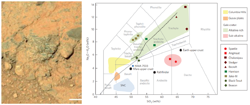 which earth rock types have been found on mars?