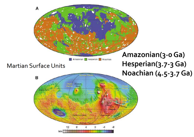 Noachian (>3.7Ga) to late Amazonian (<500Mya)