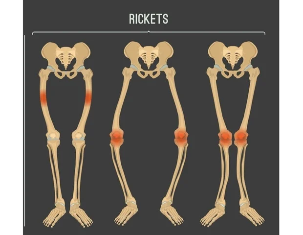 bow legs, delayed growth