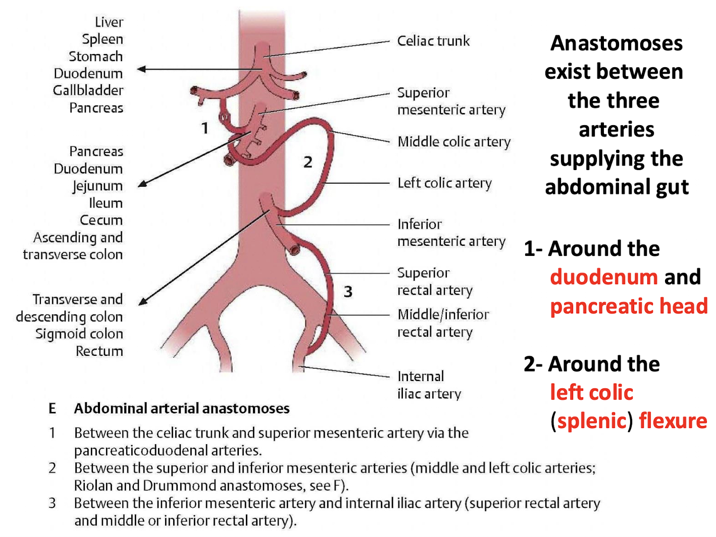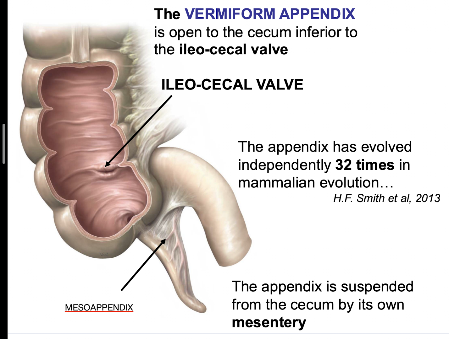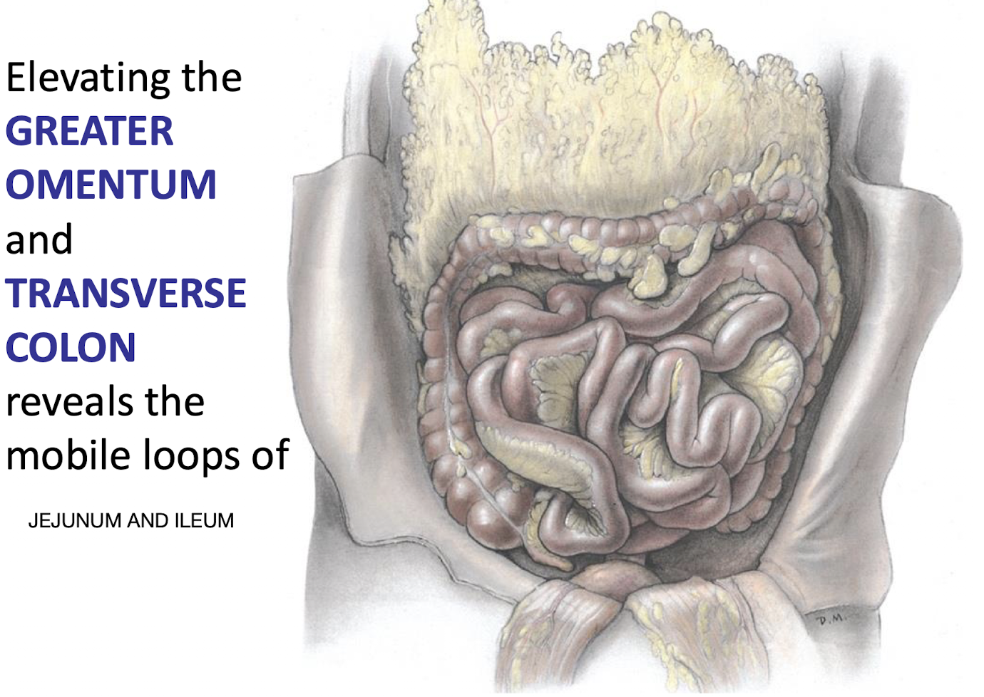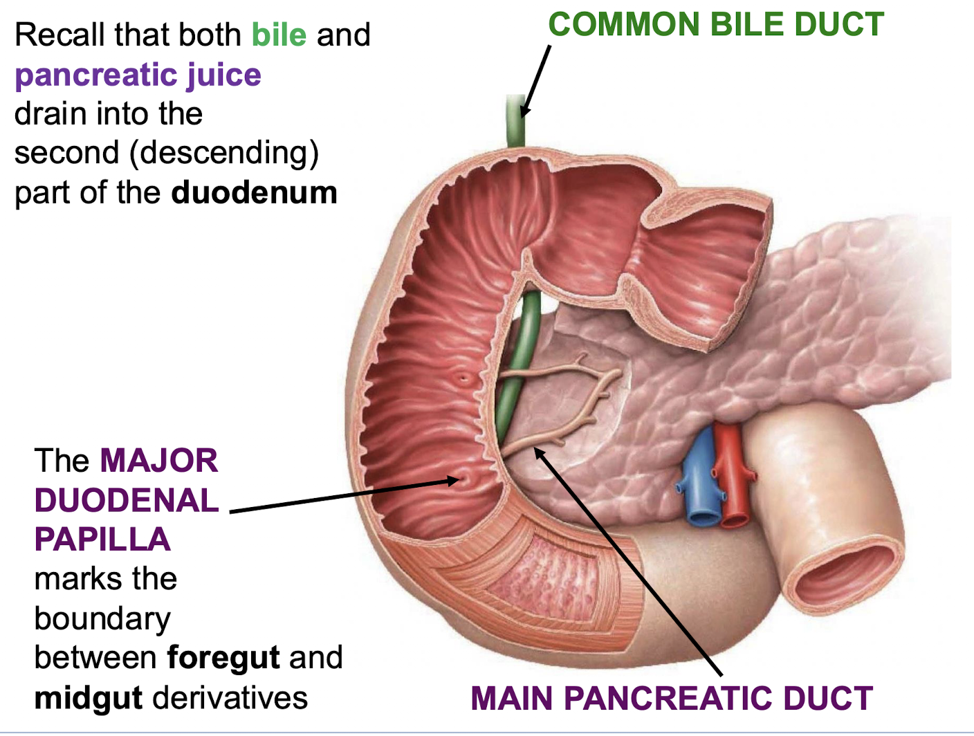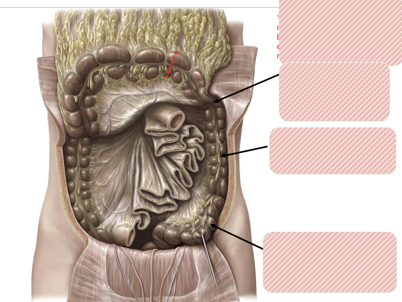 Distal duodenum; jejunum; ileum; cecum; ascending colon; proximal 2/3 transverse colon.